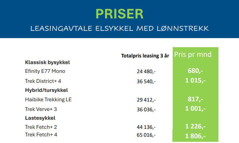 NB! Leasingavtalen gjelder KUN sykkel og ikke ekstrautstyr.
